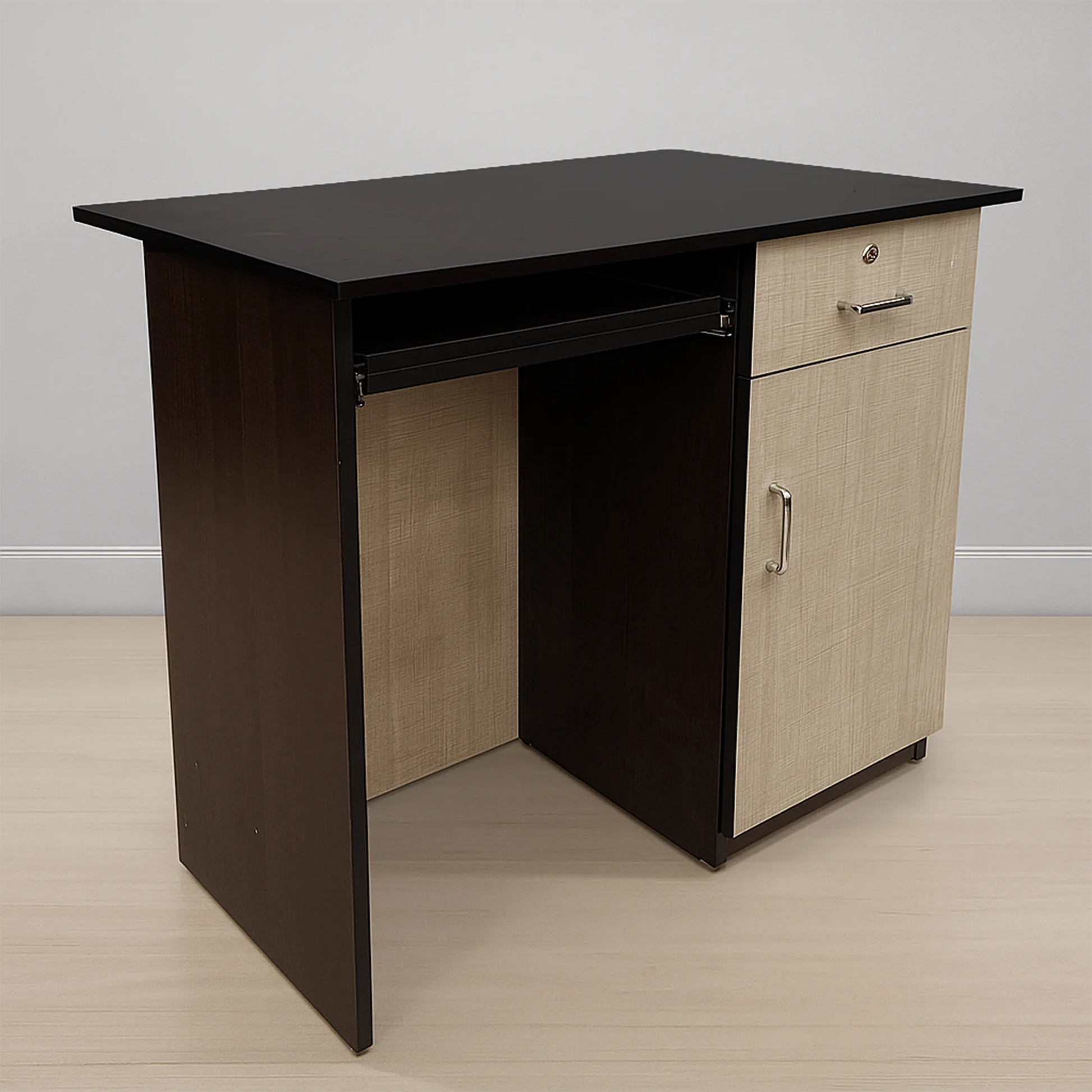 - Complete Workstation: This isn't just a table; it's a command center. It features a spacious tabletop, a pull-out keyboard tray, a lockable drawer, and a storage cabinet.