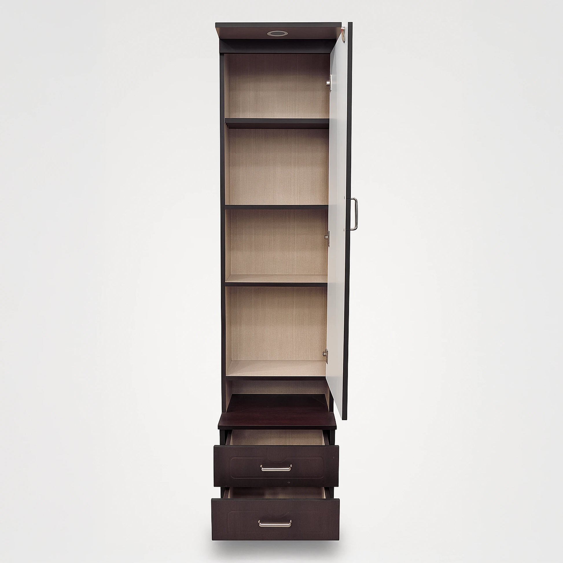 Finished in a sophisticated dark wenge tone, the Aura brings a touch of class to your decor. Its masterfully slim profile allows it to fit seamlessly into tight corners or small rooms, while its vertical design provides an incredible amount of storage. Get ready in perfect light, keep your essentials organized, and check your look from head to toe with its beautiful arched mirror.