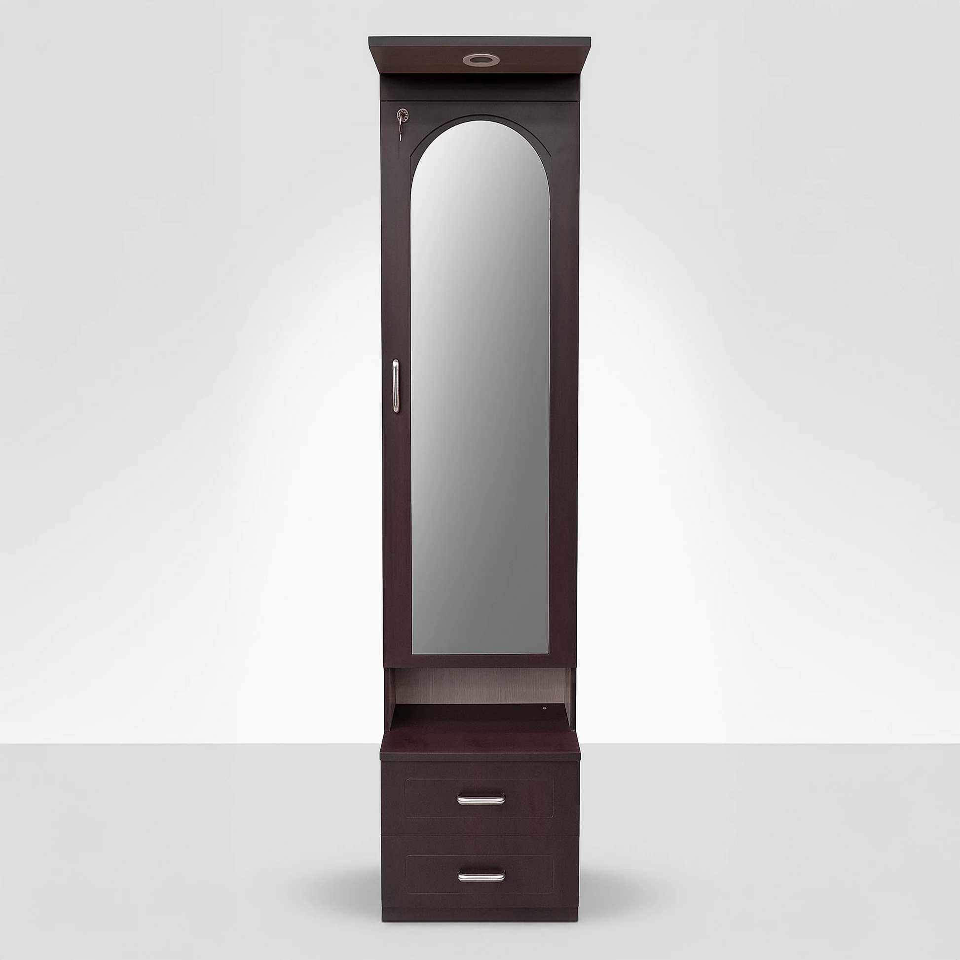 Features: Full-Length Arched Mirror, Built-in Top Light, Concealed Storage Shelves, 2 Drawers, Lock & Key