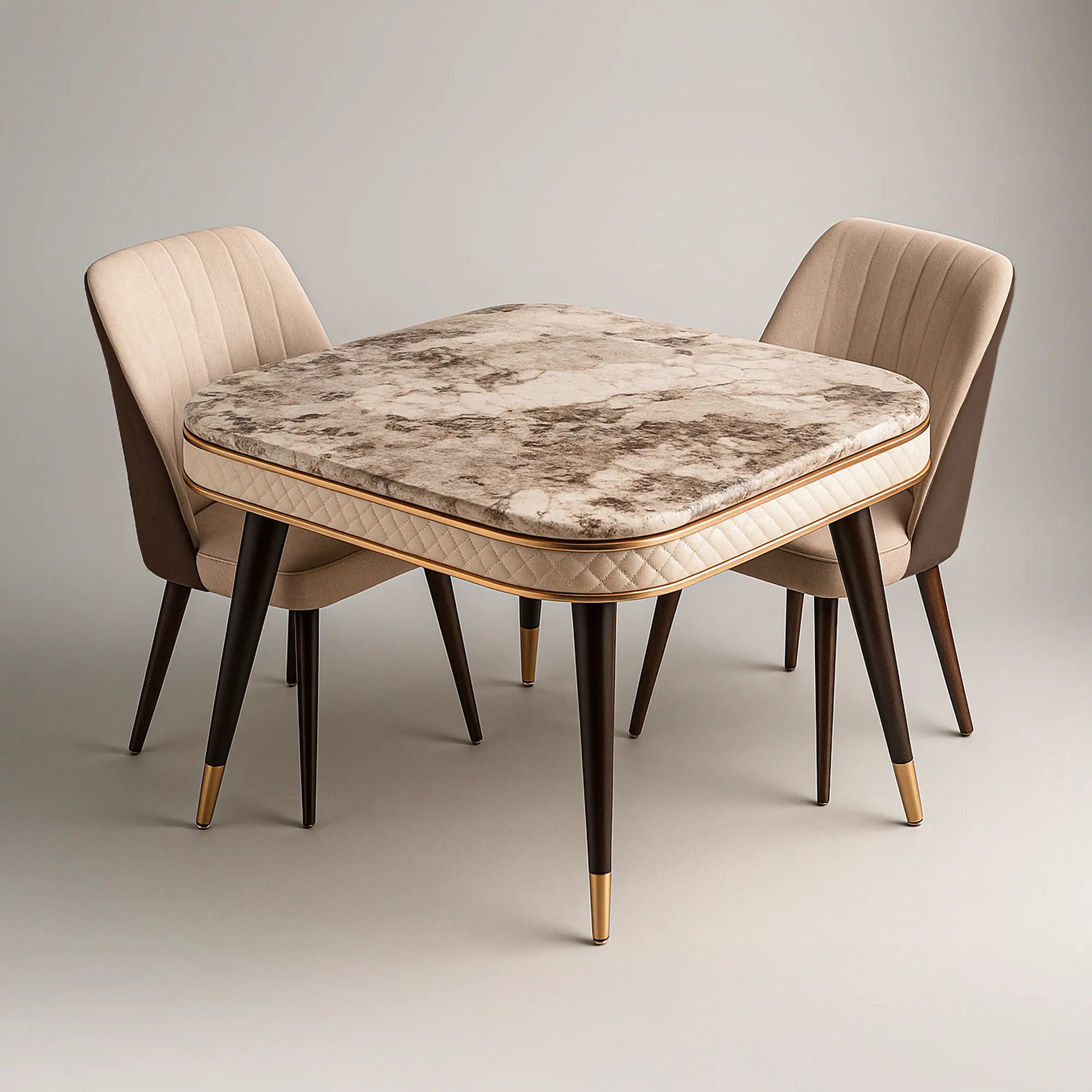Designer Marble Dining Table with 4 Padded Chairs – Premium Beige Finish