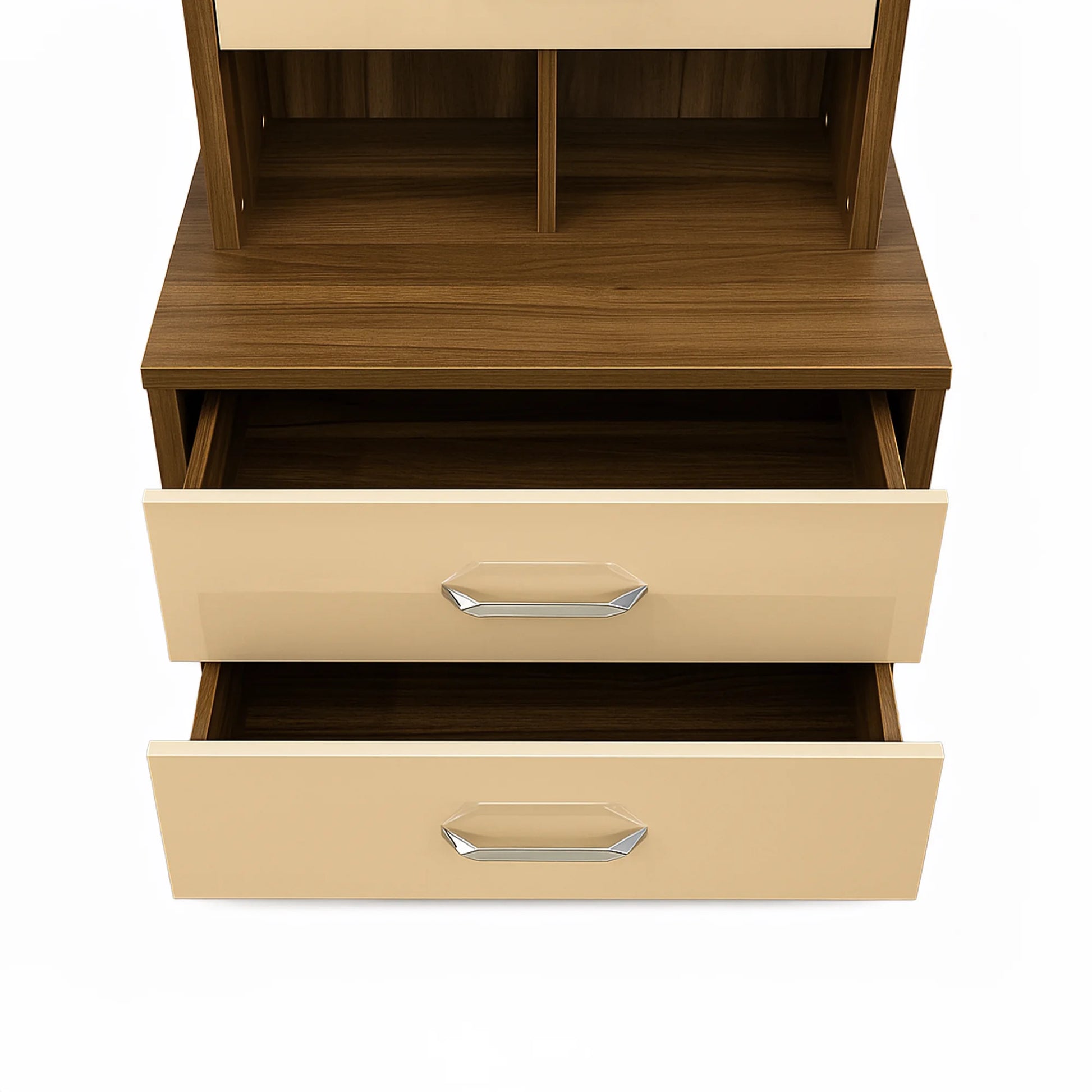 - Full-Length Mirror with Hidden Storage: The sleek, full-length mirror slides or opens to reveal four discreet shelves, perfect for organizing your makeup, skincare, and perfumes, keeping them dust-free and neatly out of sight.