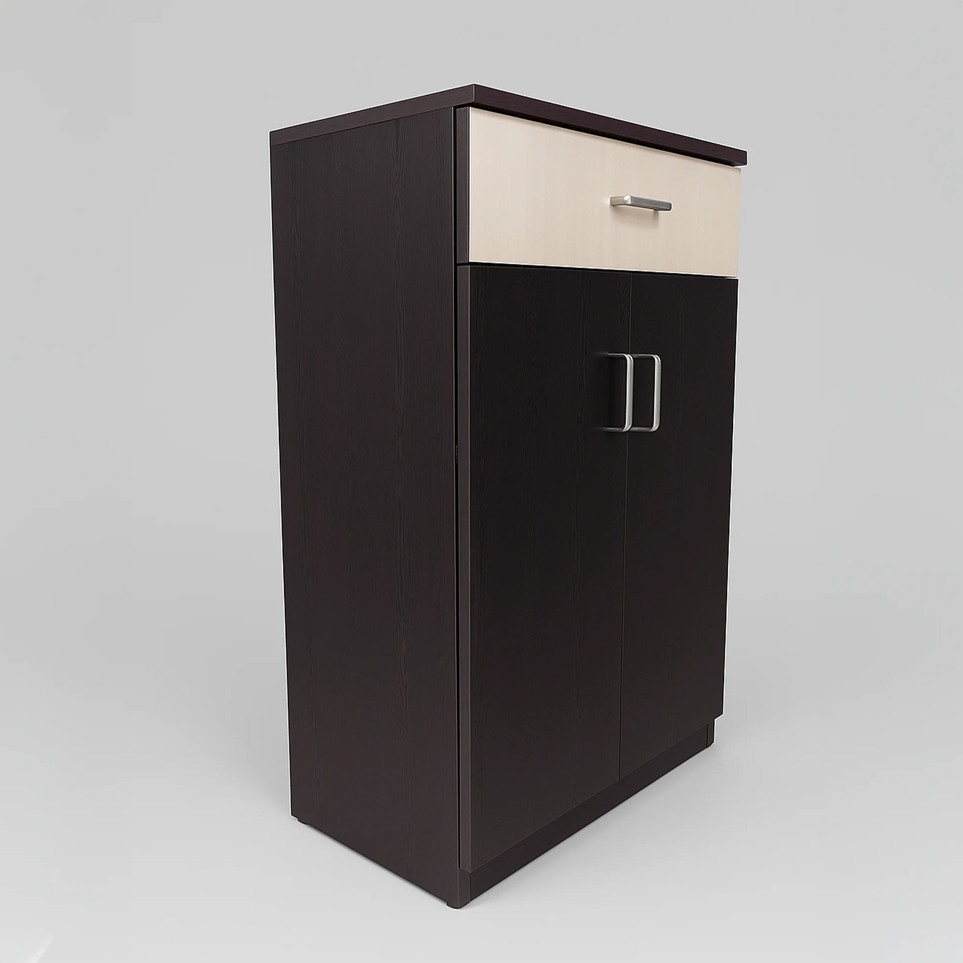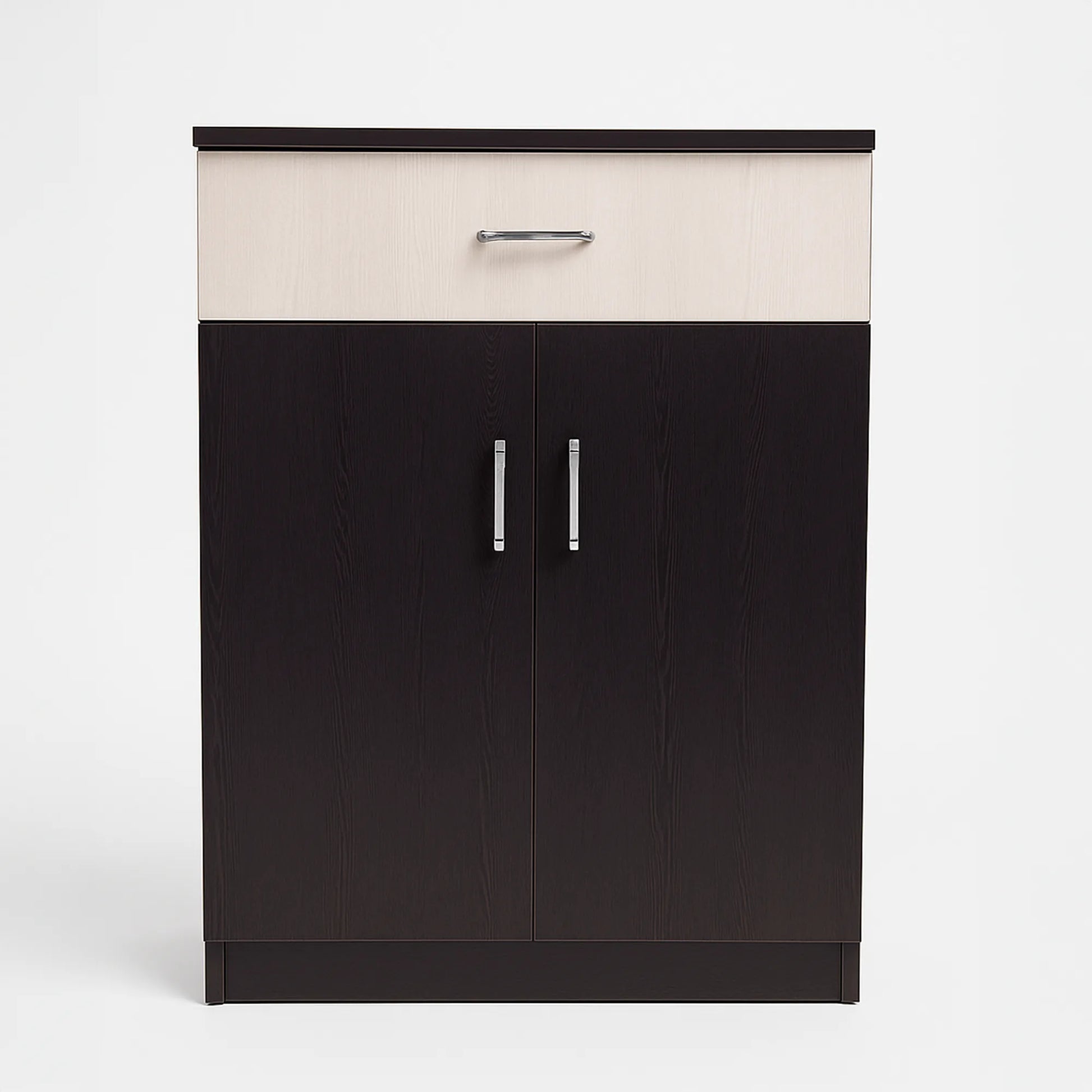 Color: Dark woodgrain & white drawer front
