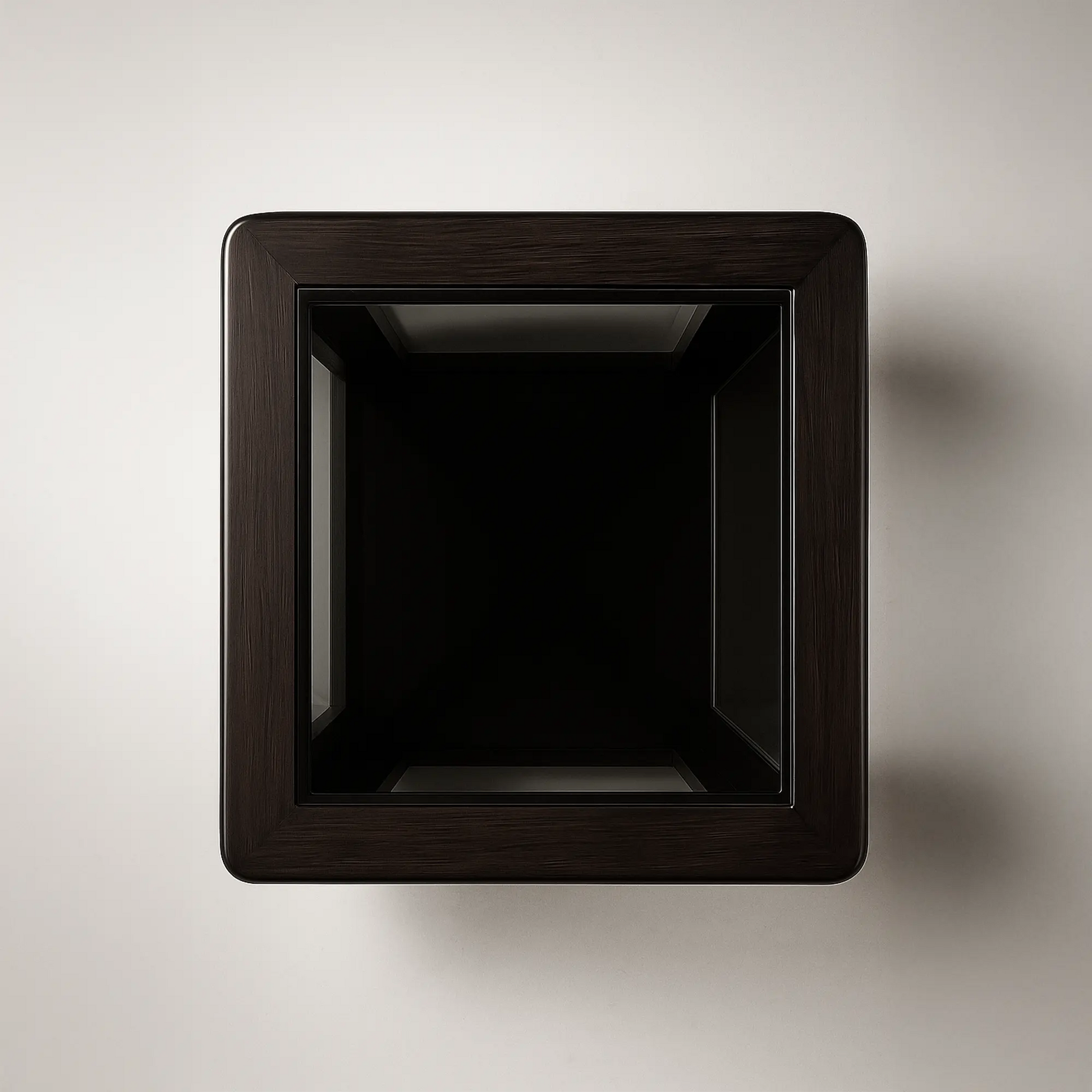 Modern square design: space-saving 21" × 21" top with sleek rounded edges.